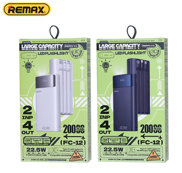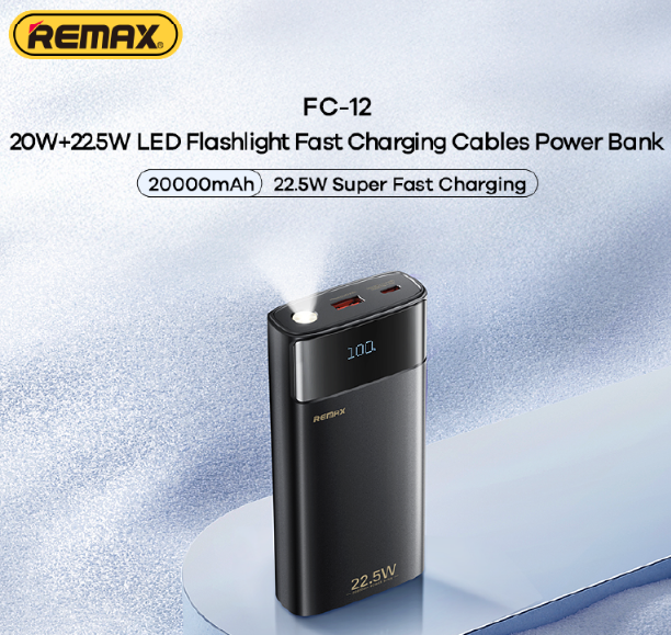 🔥REMAX FC-12 20000MAH 22.5W BUILT IN CABLES POWER BANK
