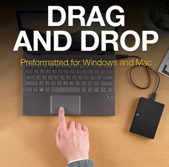 The Seagate® Expansion portable drive is compact and perfect for on-the-go. Instantly add more storage space to your computer and take large files with you when you travel.